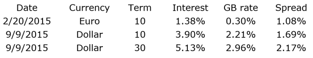 Whether these intercompany interest rates and implied credit spreads are reasonable depends on what the appropriate credit rating of the rated-party borrowers was. Table 3 presents certain key information with respect to the issuance of corporate bonds by Tyco International during 2015. These third-party interest rates imply credit spreads roughly similar to the credit spreads implied by the 1999 intercompany loans.